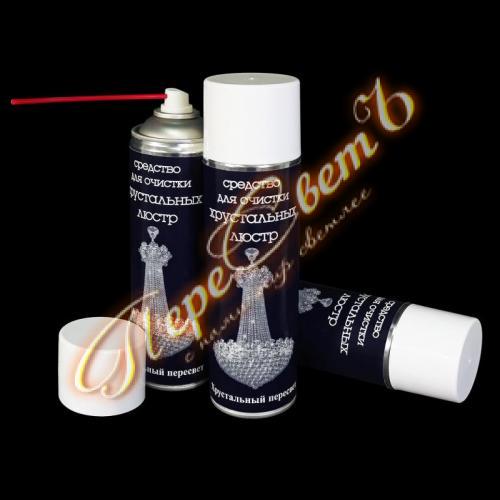 Средство для чистки люстр, изделий из хрусталя в аэрозольной упаковке. Разработано для облегчения ухода за люстрами, отпадает необходимость демонтировать, промывать и протирать вашу хрустальную люстру. Удаляет бытовые загрязнения, незаменимо при чистке многогранной, сложной поверхности ваз, кубков. После очистки предметы приобретают чистоту и первозданный блеск.